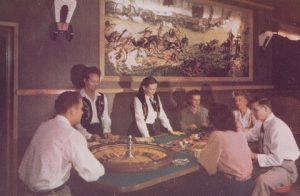 Depicting a Western motif, the business was also a model for today’s themed casinos. Rooms bore names that conjured up visions of cowboys and pioneer days, indoor paintings portrayed significant events in American history, the custom-made carpeting featured a covered-wagon design, and employees wore Western-style uniforms.