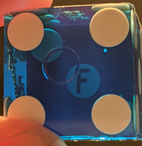 When casinos take dice out of action permanently, they mark them, most commonly with a 1/4 inch in diameter circle stamped into the plastic on the four spot side. Sometimes they use an “X,” numbers or letters instead, even “void.” This allows anyone to easily spot the unacceptable use of retired dice in a game.