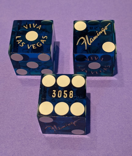 When gambling establishments first started printing identifying info on their dice, it generally was their name, like “Boulder Club.” That evolved into printing the hotel name, like “Hotel Sahara” and then the casino name, such as “Fitzgerald’s Casino.” Some casinos opted for only a printed object, like a heart, horse, fish or gun, a geometric shape or symbol.