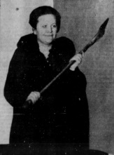Irene Kite, with axe, in action.