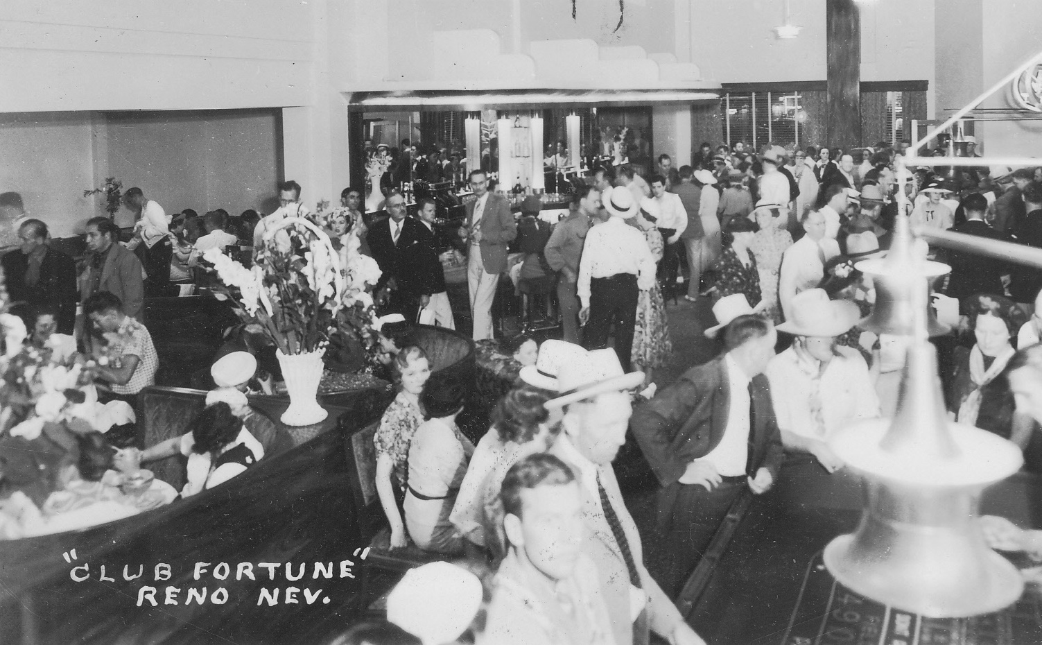 “In Reno … there is one very gorgeous and beautiful new place to dine, dance, drink and gamble to your heart’s desire (provided your money holds out) — Club Fortune it is called. As an example of elaborate lighting and decoration and lavish expenditure there are few equals in the west, especially,” wrote Charles P. Squires in his newspaper column “Observations.”
