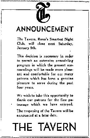 “The Tavern, Reno’s smartest night club, is one of the most popular ever opened in this vicinity,” the Nevada State Journal wrote.